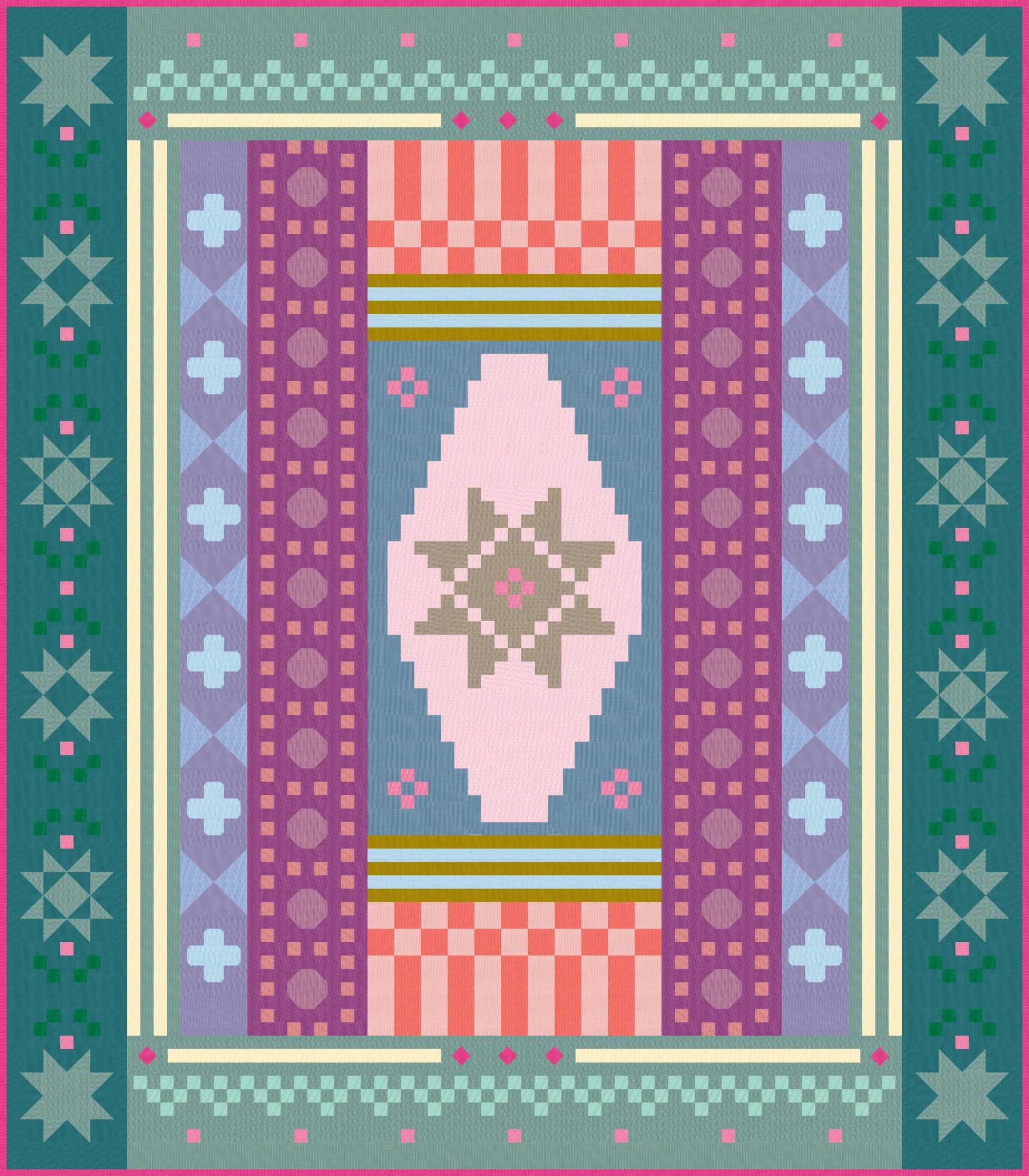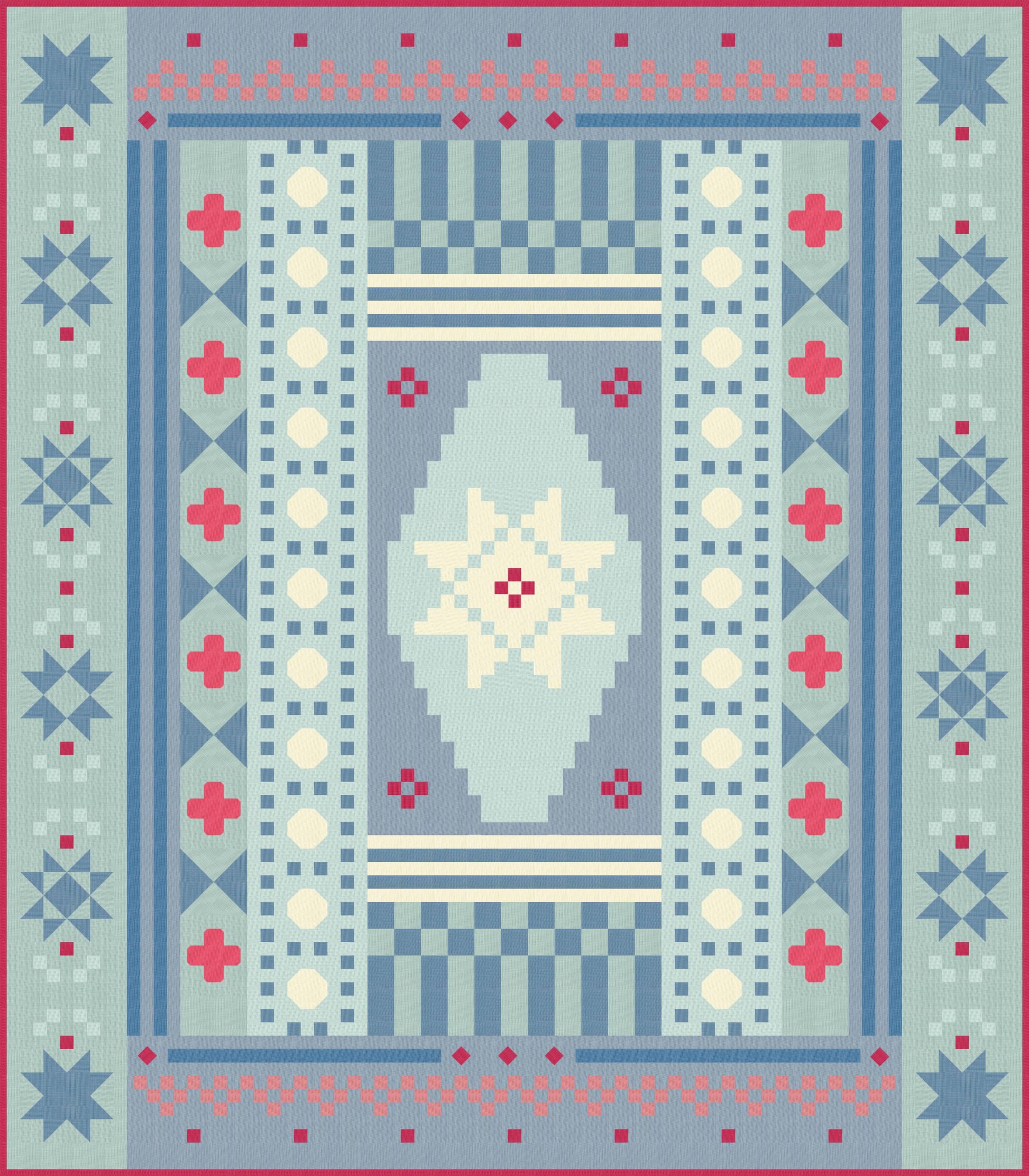 A faithful reinterpretation of the designer’s original cover quilt, translated into Devonstone solids for better availability, consistency, and a soft modern feel.